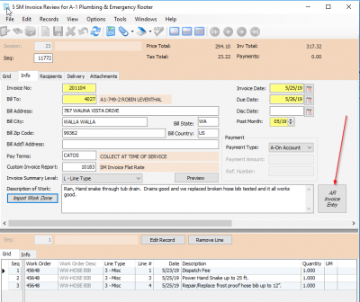 - Preview the invoice to make sure that everything looks correct, then “Process & Post the invoice, but don't send it out just yet. (Leave the “Invoice Review” form open. You will come back to it after making the A-1 Club Balance Credit Memo.)