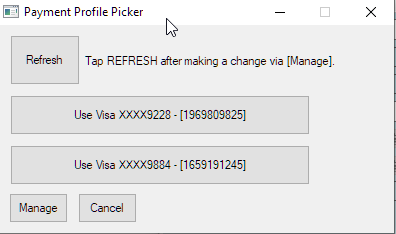 - Pay Profile - Tap Pick Card to open the Payment Profile Picker window.